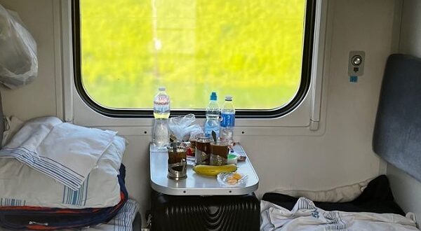 Вагон заповнювався пасажирами. Іра пройшла до свого купе. Там уже сиділи бабуся зі стареньким і молодий чоловік. Іра присіла на нижню полицю поруч зі старенькою. — Вам далеко