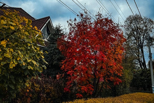 А Віра любила сидіти на ґанку вечорами, насолоджуючись тишею. Тут вона відпочивала душею від міської метушні. Вона дивилася на захід сонця, як сонце багряними фарбами фарбувало небо, і думала про щось приємне.