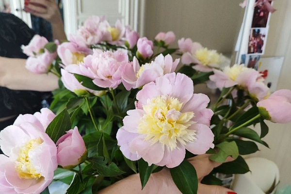 Він сидів на сходах, а в руках стискав букет півоній, улюблених квітів жінки.