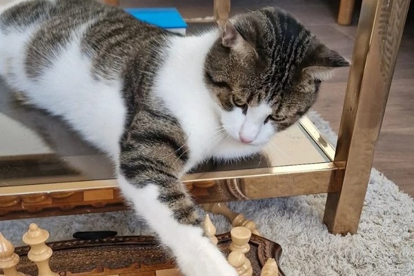 Так! Цим ходом він би наблизив крах партії. Суперник тільки цього і чекав, і, коли Петрович, не загострюючи ситуацію, посилив королівський фланг – суперник надовго замислився. А Петрович вже бачив, що партія виграна! Він підвівся, знову відійшов до дерева, кіт пішов за ним.
