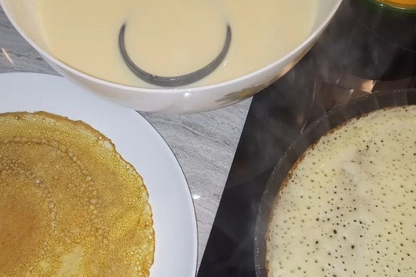 – Млинці! – гордо оголосив він. – Точніше, намагаюся. Уже третя спроба, якщо чесно. Перші дві… – він кивнув на відро для сміття, – не пережили зустрічі зі сковорідкою.